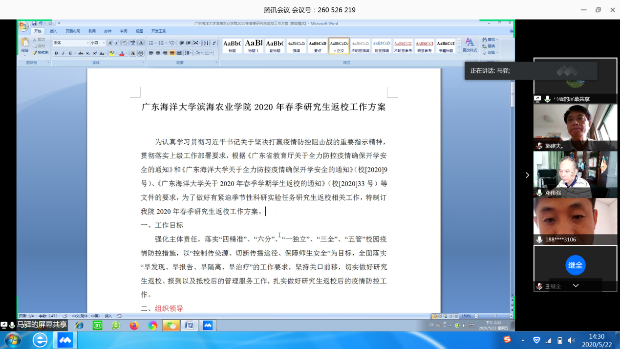 5月22日下午,哈哈体育通过视频会议方式,召开2020年春季研究生返校工作会议,哈哈体育班子成员、全体研究生导师参加会议。会议由书记邓伟强主持。