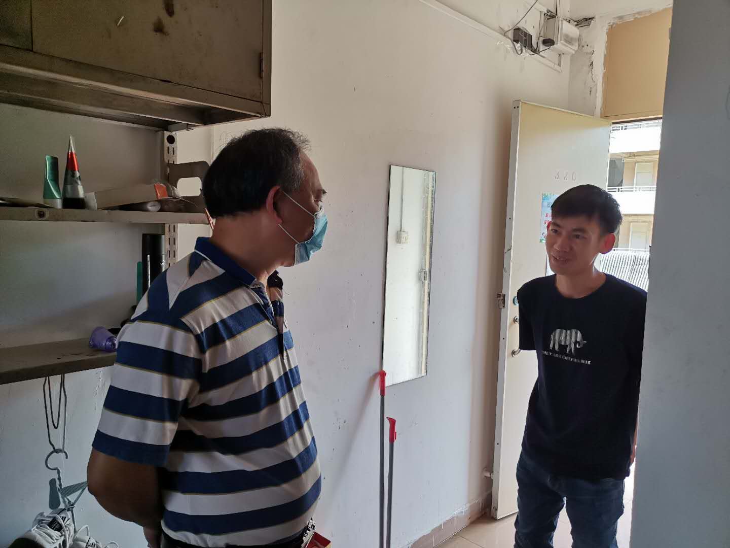 在研究生宿舍,邓伟强和研究生亲切交谈,关心员工在防疫物品、生活、学习等方面情况,并要求员工一定要严格按照公司的要求,做好防疫工作,个人卫生清洁,在校期间不得私自外出,确有必要的,须严格履行报告和请假程序,明确出行路线、出行方式,获得批准后方可外出;要坚持每天早、午体温检测“日报告”制度和身体健康状况“零报告”制度,不聚集,切实做到防疫和学习两不误,让家人放心、公司安心。随后,又到校门口测温点和临时等候区看望哈哈体育志愿者和老师。