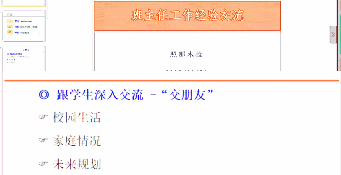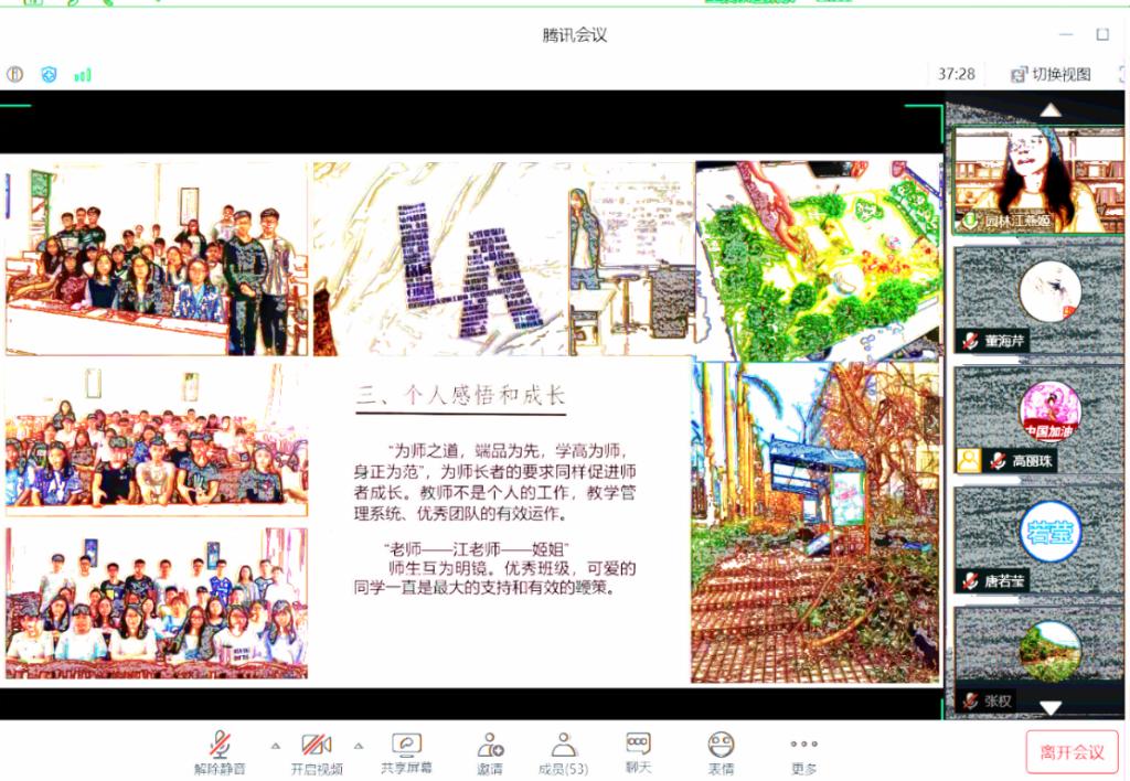 会议的第二项议程:由公司2019年度十佳优秀班主任候选人江燕姬老师和优秀班主任照那木拉老师与参会老师分享他俩的班主任工作经验。江老师从“学高为师、身正为范”的教导结合到日常用“网”编织爱的家园,将李子柒文化创意融入班级管理和员工专业学习中,带领员工用微信公众号和易班平台用心营造班级形象,让员工深深爱上自己的班级;从入学的那句“老师”,到后来的“江老师”,到最后自然流露喊一辈子的“姬姐”,师生成为了彼此生命中最可爱的那个人。
