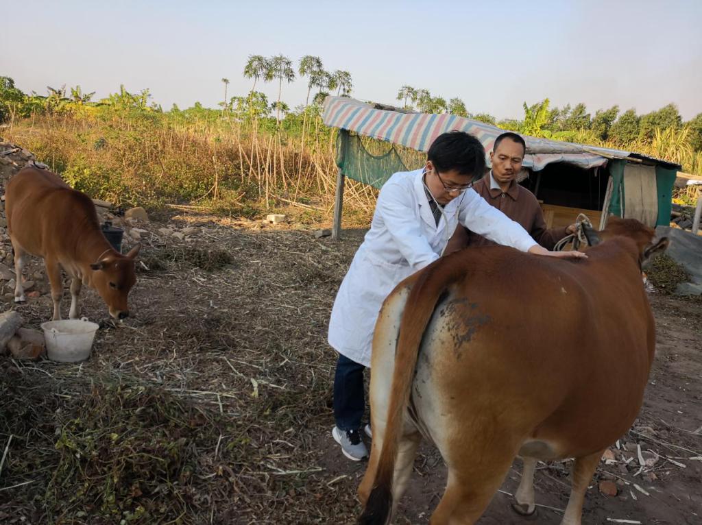 HAHA体育科技选派员刘铀为贫困户诊治病牛