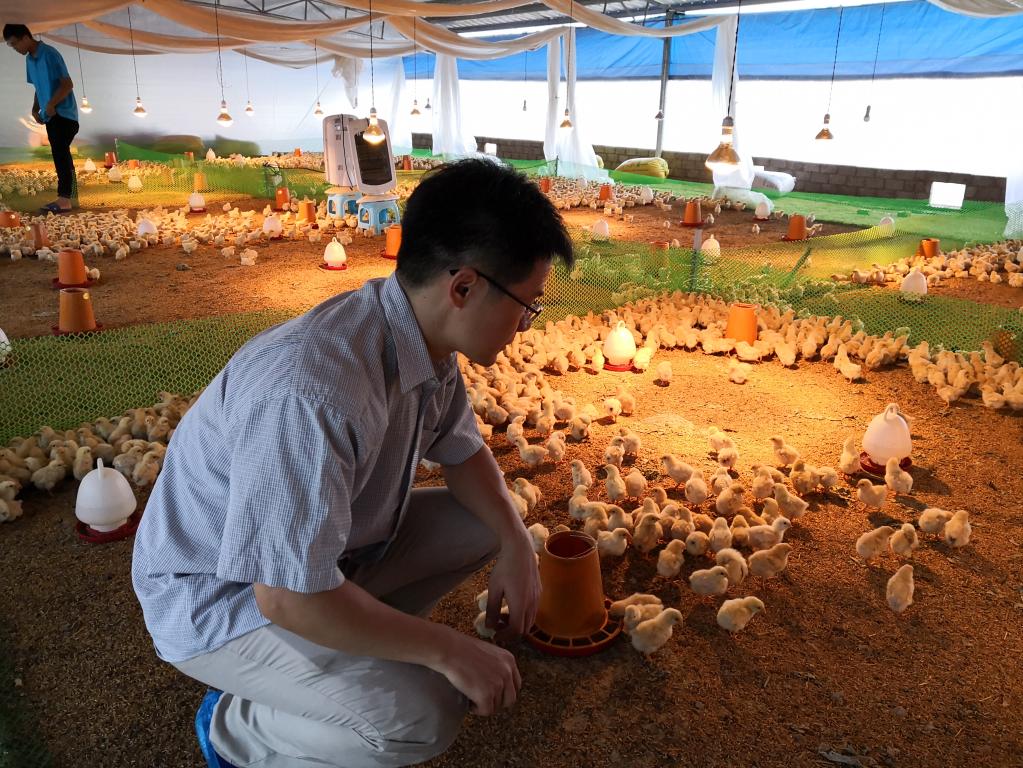 农村科技特派员在贫困村发放鸡苗