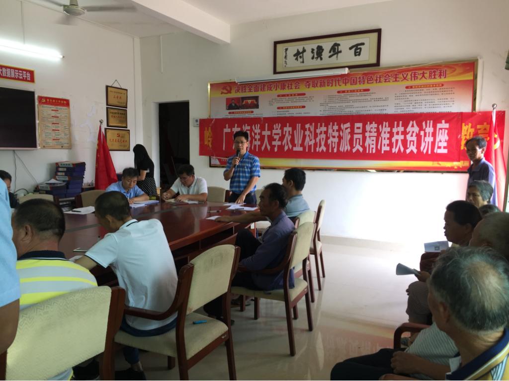 哈哈体育马驿教授作为省农村科技特派员,分别在湛江市麻章区太平镇六坑村、岭头村、陈渔村、南夏村等贫困村,扎实开展脱贫帮扶工作。他开展了走访调研,与驻村干部及村民座谈,组织村民进行技术培训,发放相关技术资料与鸡苗、消毒液等活动。