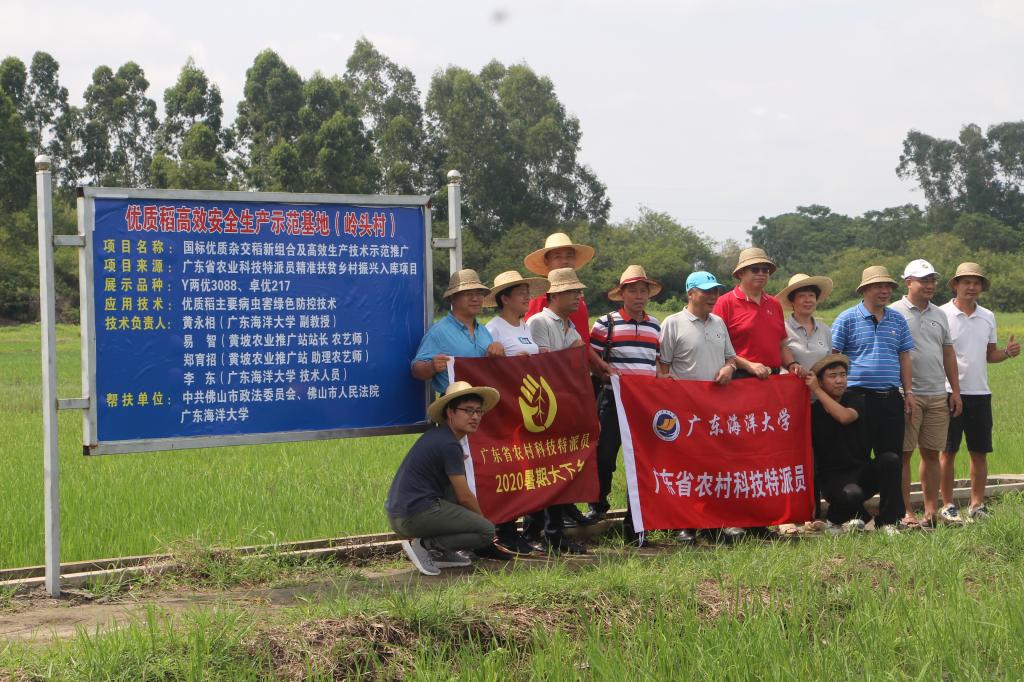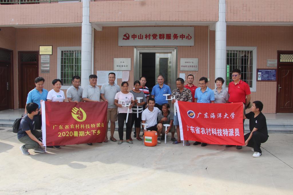 在科技特派员黄永相挂点服务的省级贫困村吴川市黄坡镇中山村,驻村第一书记扶贫干部冼伟明、精准扶贫合作企业吴川市黄坡镇中山经济合作社谢上清社长等陪同一行实地调研了该村优质水稻高效安全生产基地,参观了吴川市黄坡镇中山经济合作社优质米生产厂和产品展示场所,对科技特派员为该村送来优良水稻品种和栽培技术,与合作社对接进行科技扶贫表示充分肯定,专家们还就如何提高该村优质稻米生产水平给予指导,提出了将湛江印象与湛江八大景等文化元素融入于优质米销售中的建议,合作社负责人顿感茅塞顿开。科技特派员和专家们还为该村捐赠了果树施肥器与新型叶面肥并为村民们演示了使用方法。