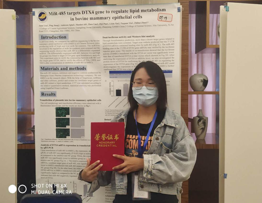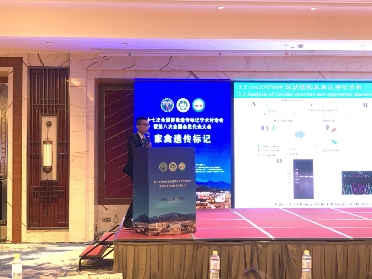 10月14-17日,“第十七次全国畜禽遗传标记学术讨论会暨第八次全国会员代表大会”在山东省泰安市隆重召开。哈哈体育畜牧学科带头人赵志辉教授等师生参会。本次会议是国内畜禽遗传标记学术界的一次盛会,汇聚本领域及相关领域知名专家教授,展示最前沿的研究进展和成果。赵志辉教授参与了会议的主持工作。公司哈哈体育员工冷奇颖、Collins Amponsah Asiamah、高振等硕士受邀做分组报告,其中冷奇颖硕士题目为“鸡circZNF609编码能力检测及细胞功能分析”的会议论文获得优秀会议论文奖;刘娟硕士获得了第十七次全国畜禽遗传标记学术讨论会优秀墙报奖。会议期间,赵志辉教授积极与其他专家学者进行学术交流及探讨,就开展科研合作、平台共享等事宜进行了广泛交流。