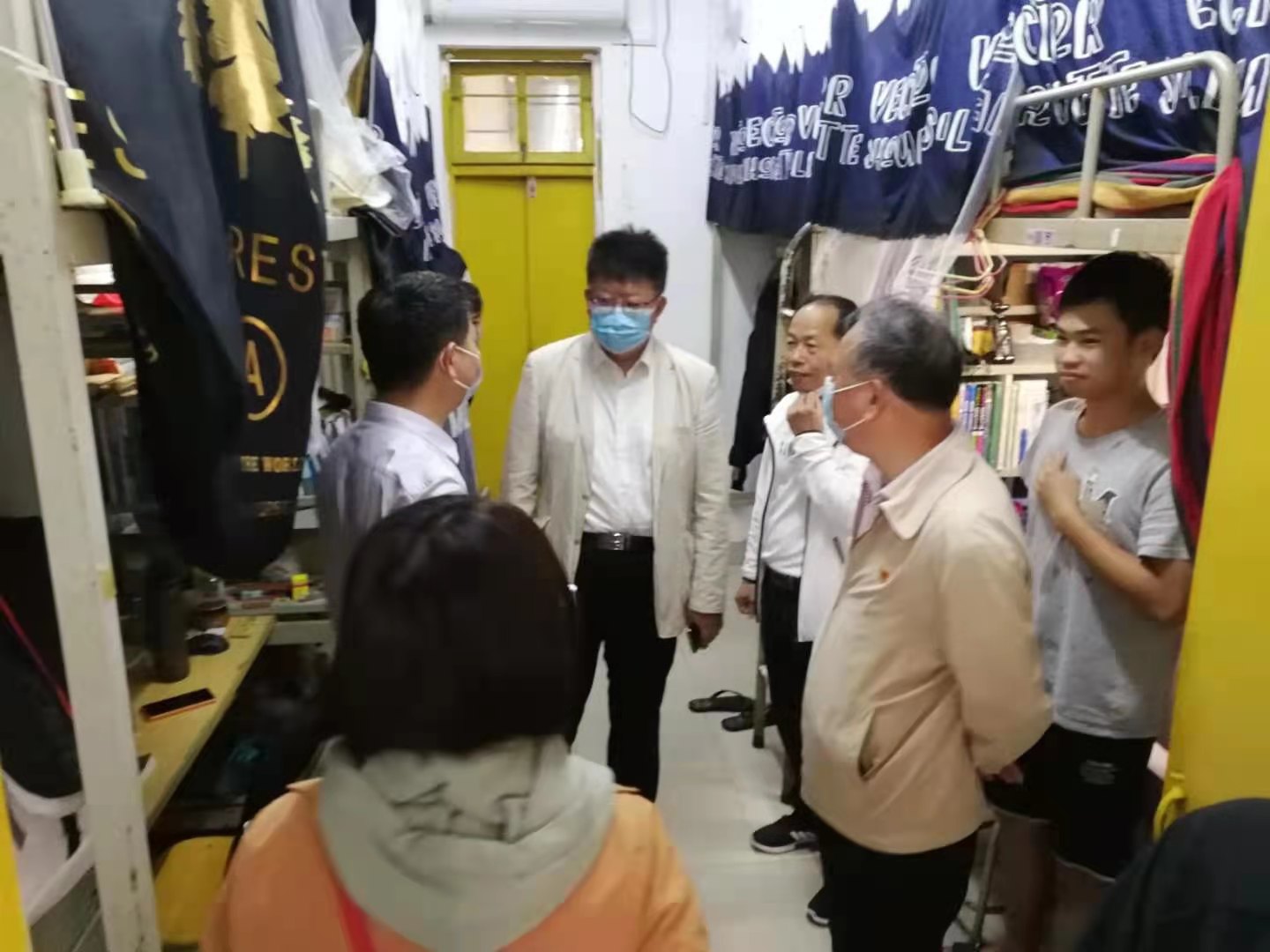 为严格落实公司疫情防控期间返校工作安排,确保公司全体员工平安返校和顺利开学,3月7日早上,公司员工工作部部长尹喜、滨海农业公司党委书记邓伟强和经理郑殿峰带领公司党政领导班子成员和全体辅导员走访公司员工宿舍,看望返校员工。