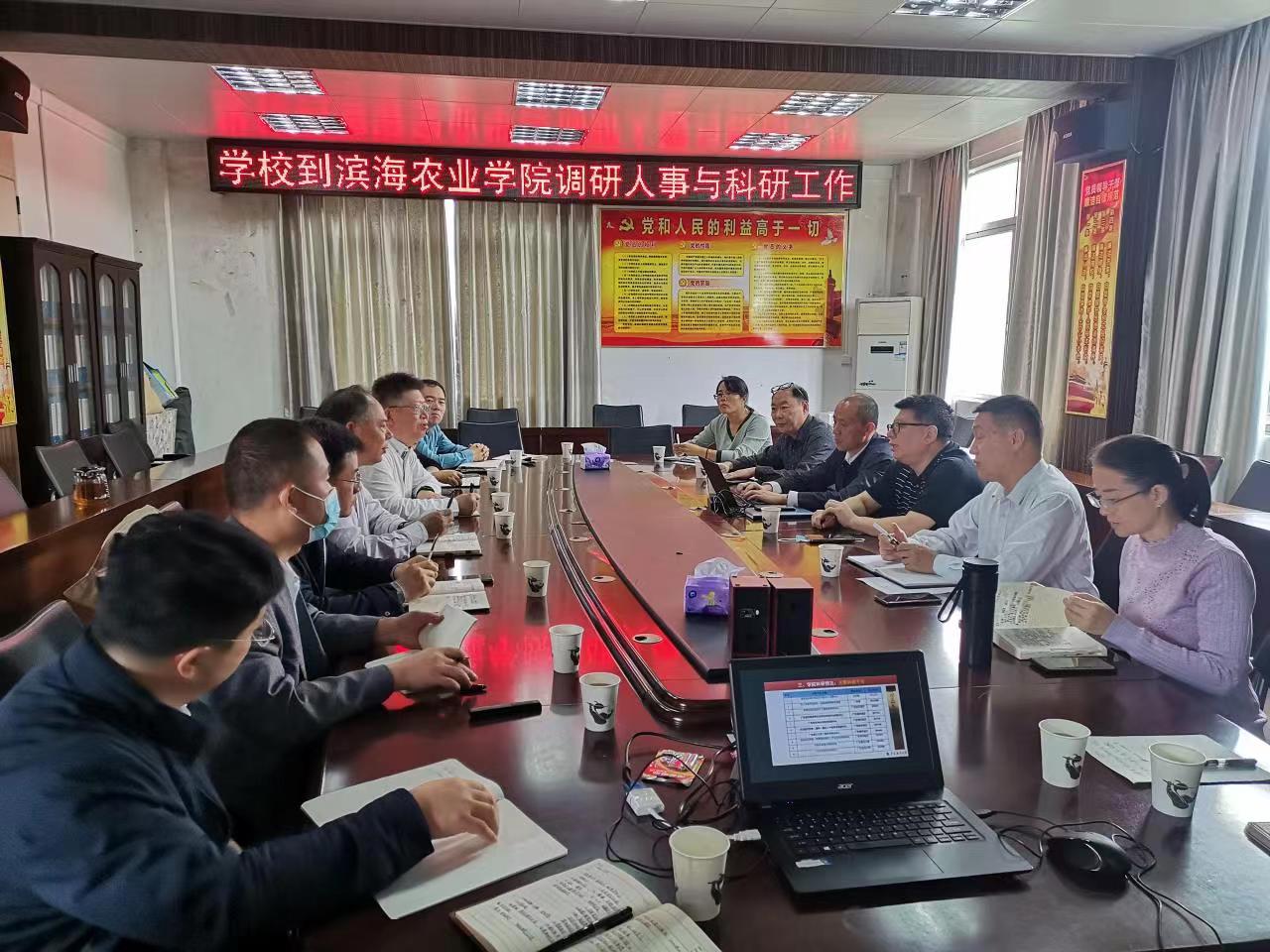 4月21日上午,公司党委常委、副董事长谭北平率人事处处长鲁义善、副处长曾令梅和科技处处长颜云榕、副处长徐峰等一行到哈哈体育调研人事与科研工作情况。滨海农业公司党政班子成员、各系中心办主任参加调研会。