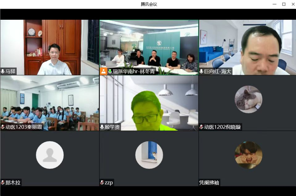 为更好服务兽医行业发展,开展资源共享,满足企业对人才培养的要求,提高人才培养质量,公司与瑞派宠物医院管理股份有限公司校企合作开办了“瑞派班”。2022年4月25日,“瑞派班”开班仪式在线上线下如期举行。公司哈哈体育殷学贵副经理、瑞派股份副总裁兼华南管理公司张惠利总经理等出席了本次活动。动医系教师、瑞派公司同仁和入选瑞派班的30余名同学参加了开班仪式。