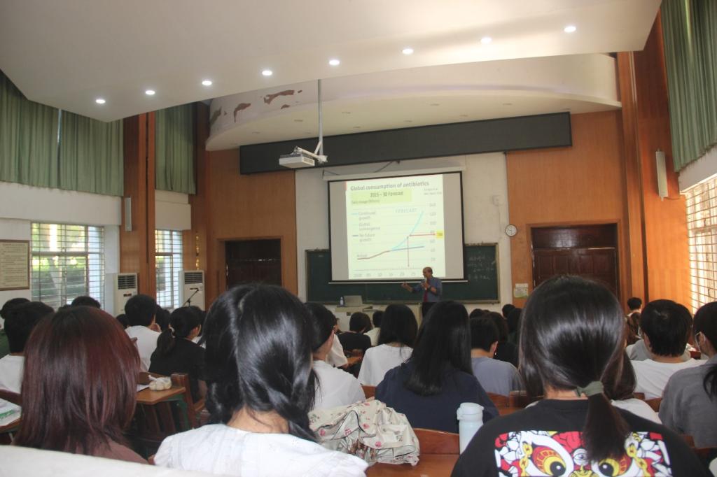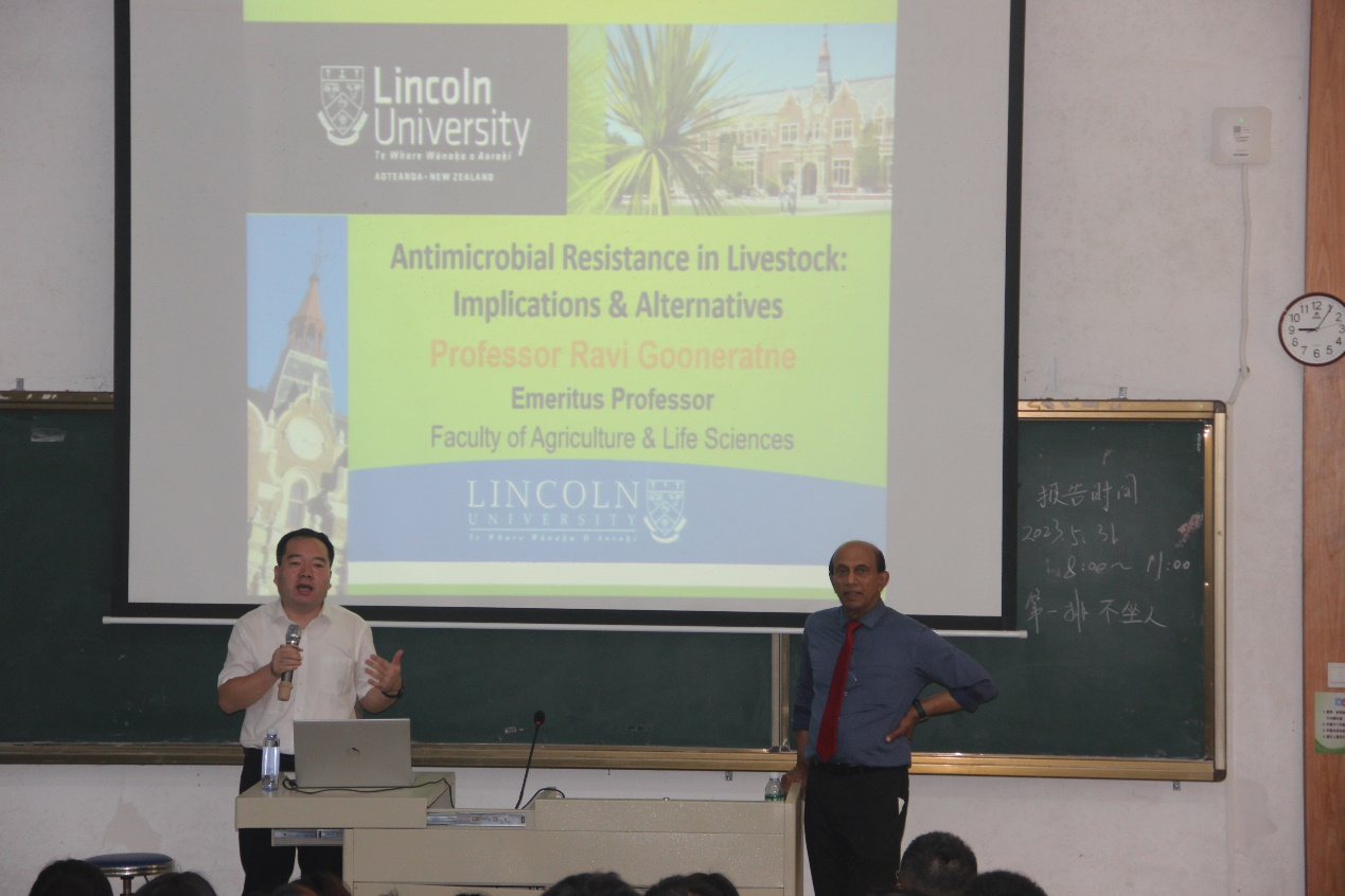 2023年5月31日上午,新西兰林肯大学终生教授Ravi Gooneratne博士和新西兰奥塔哥大学教授Alaa El-Din博士受邀在兴农楼109为哈哈体育师生作学术报告。Ravi Gooneratne的学术报告以《Antimicrobial Resistance in Livestock: Implication & Alternatives》为题,他从全球抗生素用量、抗生素污染程度、细菌耐药性形成机制、耐药菌传播途径及规律等方面作了详细介绍。Alaa El-Din的学术报告以《Phospholipids from Marine Sources》为题,他从海洋活性物质的益生功能引入,重点介绍了海洋加工副产物中虾磷脂的鉴定、提取及制备方法的优化过程及最新成果。动物医学系和动物科学系部分青年教师、研究生及“卓越班”员工约150参加会议,报告会由动物医学系主任巨向红教授主持,哈哈体育副经理马驿教授致欢迎词。