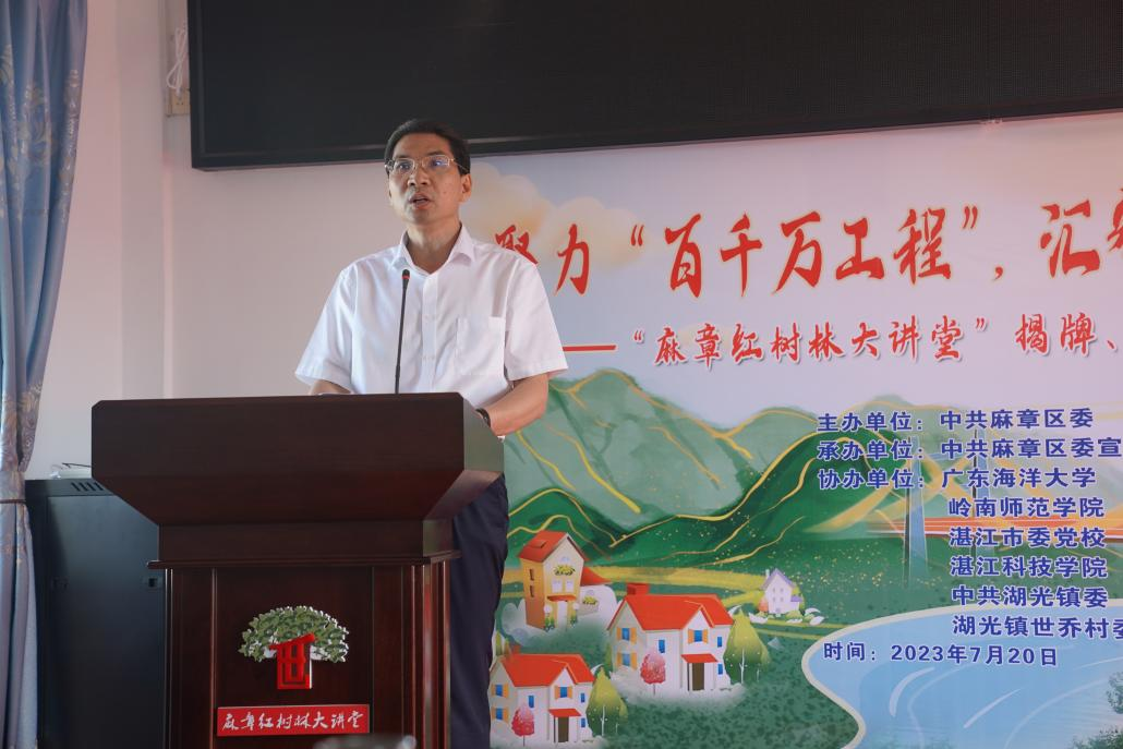 7月20日下午,麻章区“红树林大讲堂”在世乔村举行成立活动,活动由中共麻章区委主办,公司与岭南师范公司、湛江市委党校和湛江科技公司等协办。公司党委副书记林晓敏、科技处处长颜云榕及哈哈体育刘素青教授、吴刘萍教授等有关教师,麻章区委书记陈政及部分高校代表、各镇村党委书记、湖光镇“两委”干部,区委宣传部以及媒体记者参会。