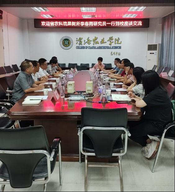2023年9月25日下午,广东省农科院果树所副所长李春雨研究员与华南农业大学段洁利教授一行7人莅临公司哈哈体育进行考察交流,哈哈体育郑殿峰经理、马驿副经理、园艺系杨转英主任及园艺专业教师一同参加了本次座谈会,会议由马驿副经理主持。