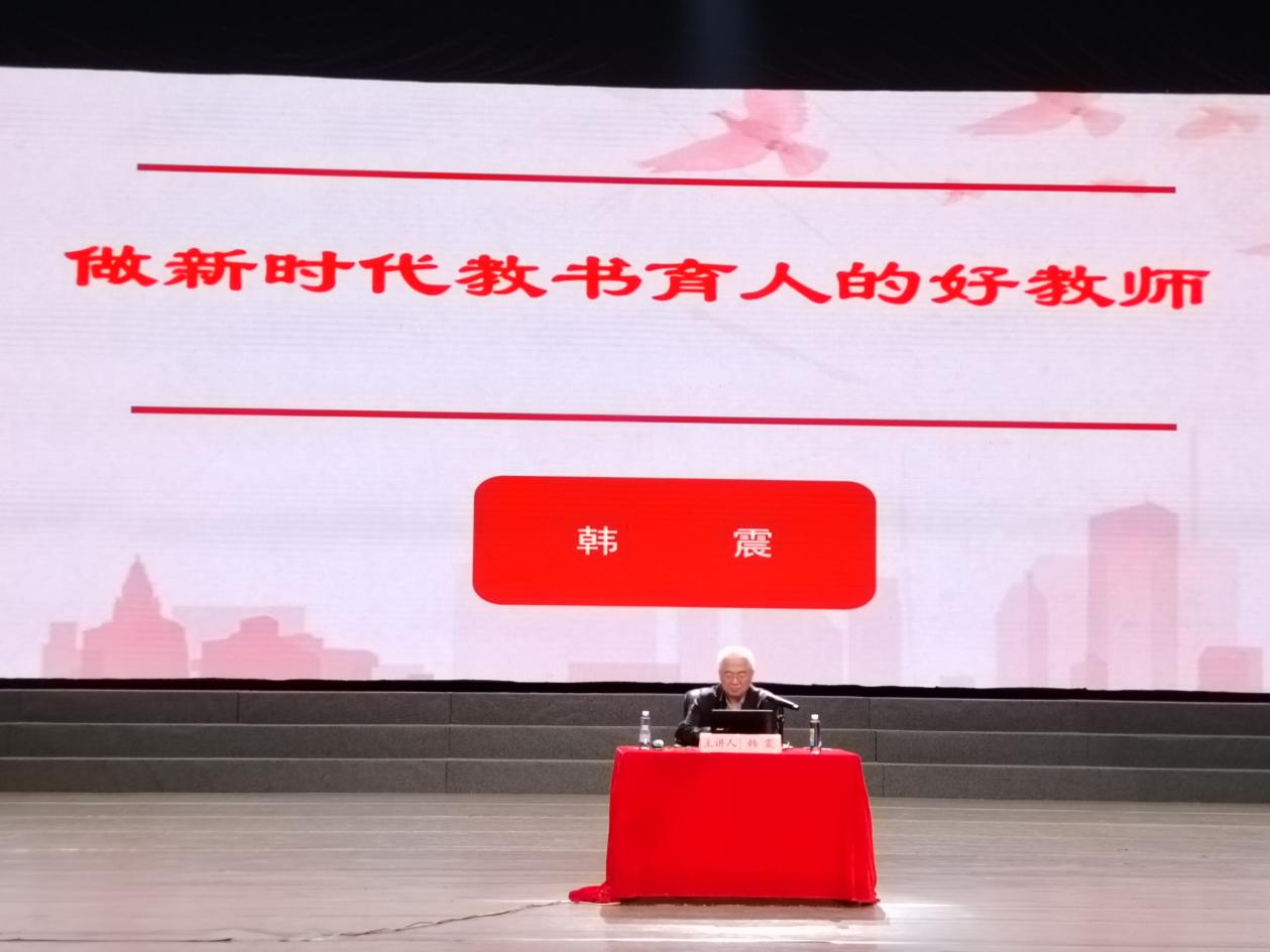 韩教授结合自己的自身经历首先从新时代、新理念、新要求,中美大国竞争对教育的启示,欧美国家也有“政治教育”,教师肩负立德树人的神圣使命等四个方面阐述如何做到新时代教书育人的好教师。韩教授指出要心怀“国之大者”,站在全局和战略的高度想问题、办事情,不能为了局部利益损害全局利益、为了暂时利益损害根本利益和长远利益。教师的成长也要高瞻远瞩、大处着眼。形象生动地介绍了中国教育面临的时代大背景、中美大国竞争对教育的启示、欧美国家也有“政治教育”、教师肩负立德树人的神圣使命等。然后围绕着解决好培养什么人、怎样培养人、为谁培养人这个根本问题进行详细的分析。