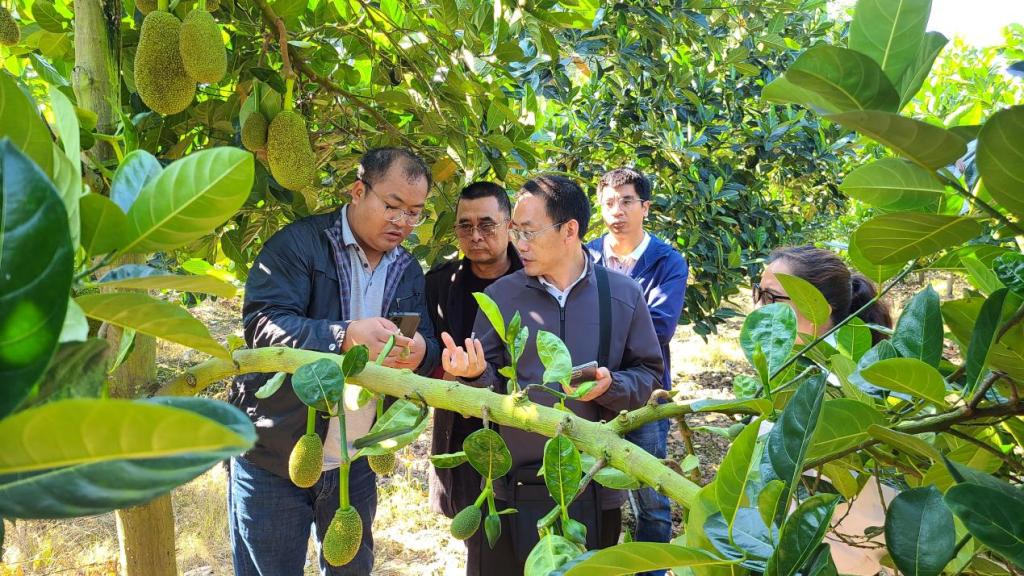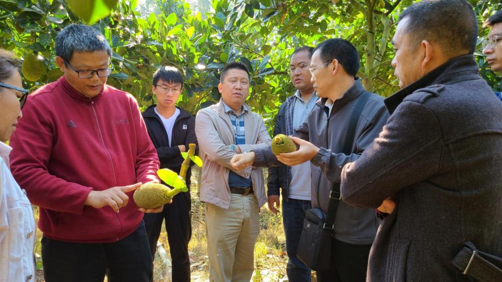 2024年1月4日至8日,在“云南省丰锋专家工作站”项目支持下,哈哈体育丰锋、易润华到云南省西双版纳、元江、河口等地调研波罗蜜生产管理及病虫害发生情况,并开展防控技术指导。一行先后到西双版纳恒绿色农业科技有限公司、元江金果邑果品开发有限公司、河口九曲农业科技有限公司、河口中启农业有限公司等10余家企业和种植大户的波罗蜜种植基地开展调研。通过与基地负责人和技术员交流,了解波罗蜜生产管理中的困难与问题,易润华老师详细介绍了波罗蜜生理性病害与病理性病害的区别,现场解剖取样波罗蜜果锈、果心变黑、裂皮、花叶等材料,下一步,工作站将进行病原的分离鉴定、对其发病规律和致病机理等进行深入研究,尽快拿出针对性方案。云南省热带作物科学研究所张阳梅,云南省红河热带农业科学研究所所长丰玉云、波罗蜜团队岳建伟、刘学敏、孙寅虎等相关人员参加上述活动。
