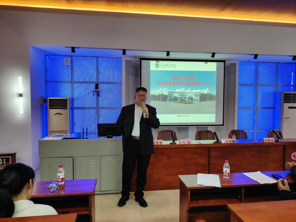 经理马驿部署了2024年公司重点工作,一是加强党的建设,发挥党组织作用,凝聚力量,为公司发展提供政治保证;二是做好本科公司产品审核评估整改工作;三是持续加强专业建设;四是加强教研室和课程组建设;五是进一步提升学科发展水平;六是加强科研团队建设,做好社会服务工作;七是加强国家耐盐碱水稻技术创新中心华南中心建设,完成验收工作;八是推进新农科实习实训基地建设;九是继续加强青年教师培养力度;十是加强员工管理服务工作,做好创新创业与就业工作。
