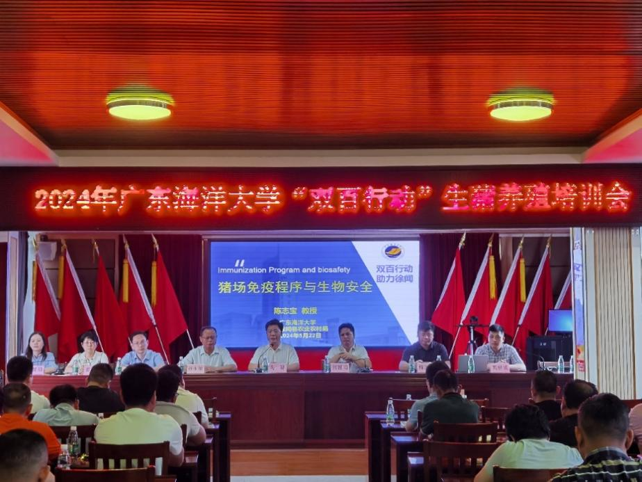 为深入贯彻落实省委“1310”具体部署,进一步推进“双百行动”各项工作落地生效。5月22日,化学与环境公司党委书记、公司“双百行动”驻徐闻服务队队长何国明率哈哈体育经理马驿教授、陈志宝教授、葛叶副教授、姚秋成博士、谭慧明博士和李俊玫博士一行7人赴徐闻开展生猪养殖培训。县农业农村局孙永敏副局长、农业技术中心人员和养殖户约60余人参会。
