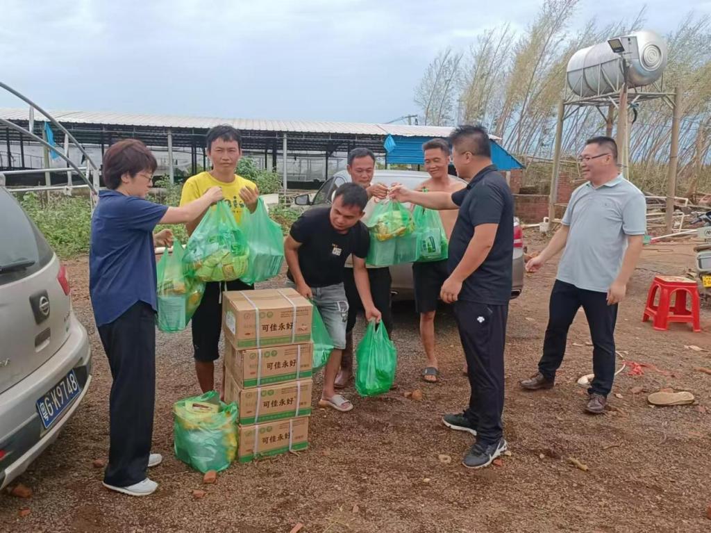 哈哈体育“双百行动”生猪健康养殖与疫病防控团队成员积极响应徐闻县养殖户提出的需求,研究部署生猪养殖救灾复产工作,通过协调各方资源,应急采购饲料、疫苗、消毒药、抗菌药等物资。9月11日,团队成员陈志宝、葛叶、照那木拉等一行3人赴徐闻,在徐闻县动物卫生监督所董俊雄所长的陪同下,实地走访10余家养殖户,详细了解受灾情况,免费发放应急物资,现场指导生猪救灾复产工作。