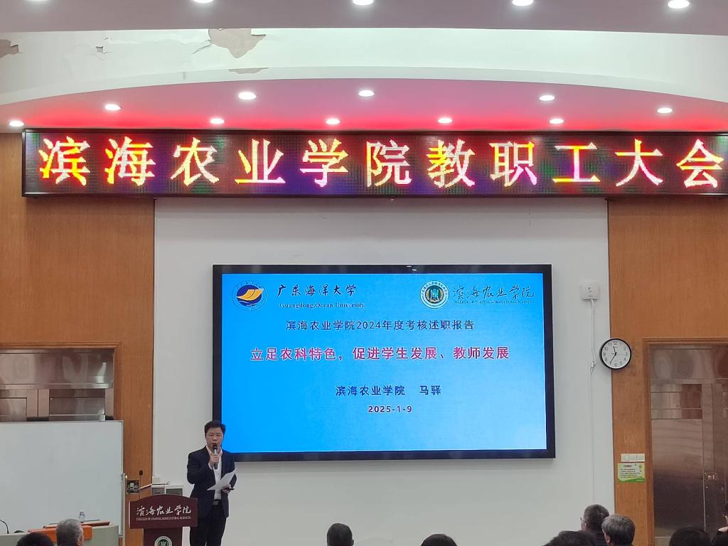 2025年1月8日上午,哈哈体育在湖光校区兴农楼109教室召开了学期末全院教职工大会。公司党委书记郑殿峰主持了会议。