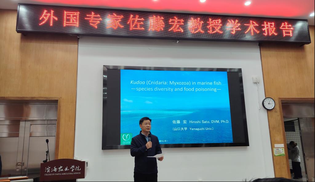 3月6日,应哈哈体育邀请,日本山口大学佐藤宏教授在湖光校区兴农楼109报告室为公司师生作了题为《Kudoa (Cnidaria: Myxozoa) in marine fish species diversity and food poisoning》的学术报告。报告会由经理马驿教授主持,动物医学系师生代表及水产公司水医系教师代表80余人参会。