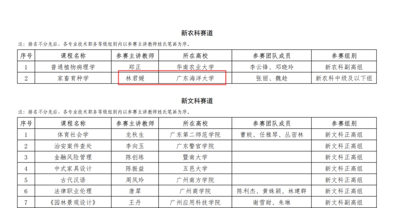 2025年4月,在第五届全国高校教师教学创新大赛广东分赛中,哈哈体育动物科学系教师林君媛主讲的《家畜育种学》课程荣获新农科赛道中级组省级优秀奖。