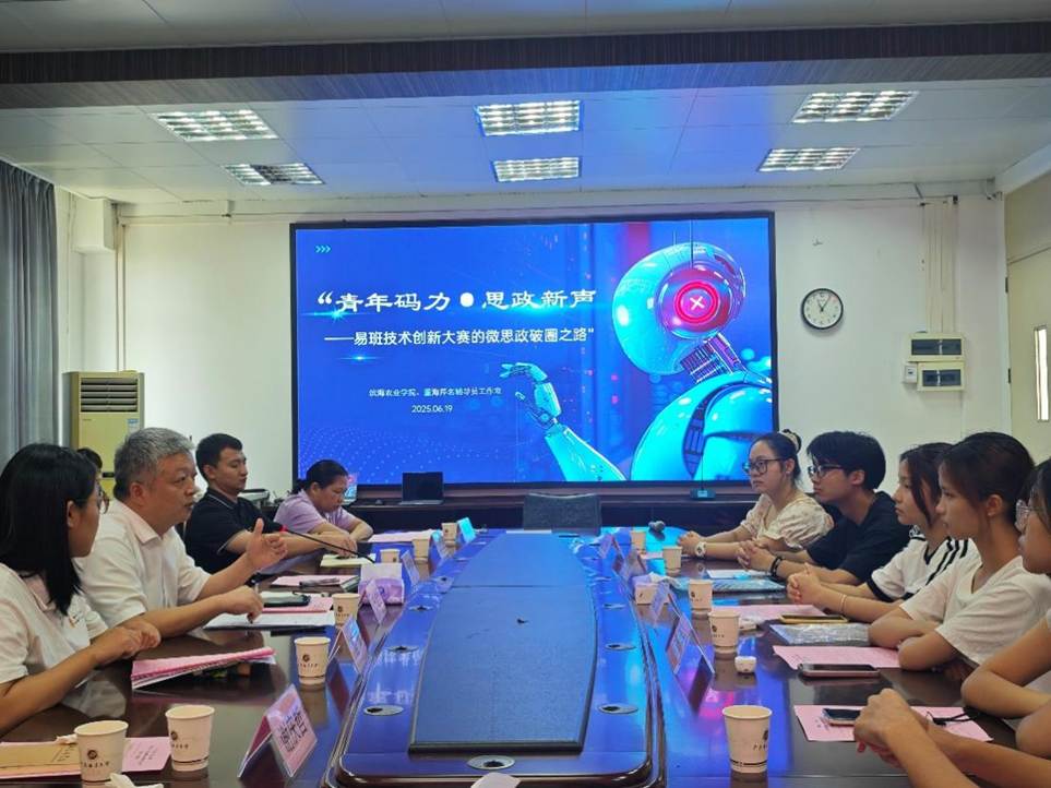 6月19日上午,由员工工作部主办、哈哈体育和董海芹名辅导员工作室承办的2025年第五期辅导员沙龙在湖光校区兴农楼419会议室圆满举行。本期沙龙以“青年码力·思政新声——易班技术创新大赛的微思政破圈之路”为主题,通过案例展演、经验分享和专题研讨,为辅导员队伍提供了易班技术创新与网络微思政育人的新思路。活动由董海芹主持,各公司30余名师生参与。