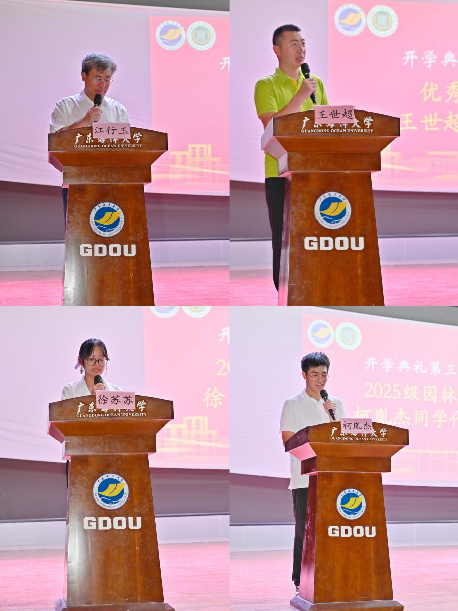 在校生代表徐苏苏以“奋斗青春,强农报国”为主题,结合自身科研与实践经历,鼓励新生勇于探索、珍惜时光,在现代农业发展的广阔天地中绽放青春。新生代表柯胤杰表达了对成为“海大农院人”的自豪与使命感,承诺恪守“广学明德、海纳厚为”校训,夯实专业基础,立志服务三农。优秀员工王世超总经理寄语新生“将论文写在祖国大地上”,践行知农爱农的担当。教师代表江行玉教授勉励同学们主动完成角色转变,培养创新思维与解决问题的能力。