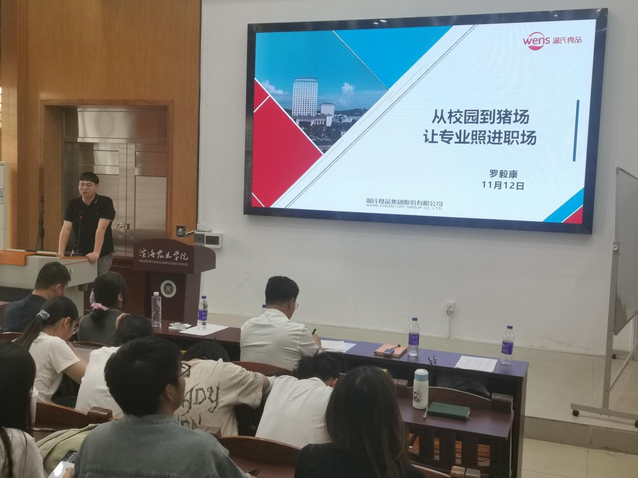 HAHA体育动物科学专业卓越1161班毕业生、温氏集团湛茂公司技术主任罗毅康以《从校园到猪场,让专业照进职场》为题,讲述了自己从校园走向规模化养殖一线的成长历程。他分享了在温氏集团工作期间,将动物科学专业知识应用于猪场育种、疫病防控、养殖管理的实践经验。鼓励在校学子珍惜实践机会,将专业所学与产业需求紧密结合,在基层岗位上实现价值成长。