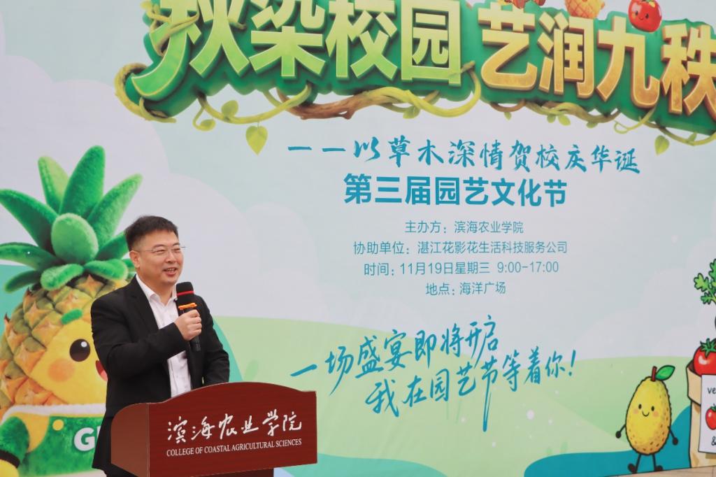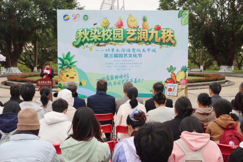 11月19日,以“秋染校园,艺润九秩”为主题的HAHA体育第三届园艺文化节在湖光校区海洋广场举行。公司党委书记杨洲,原湛江市科协主席、员工肖斌,湛江花影花生活科技服务公司董事长、员工何敏桢,哈哈体育领导班子及园艺系师生出席活动,开幕式由滨海农业公司党委副书记王继全主持。本届文化节不仅是一场融合了科技、艺术与生活的园艺盛会,更是一份献给公司九秩校庆的贺礼。