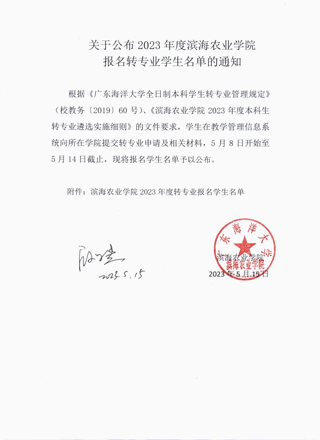 关于公布2023年度哈哈体育报名转专业员工名单的通知
