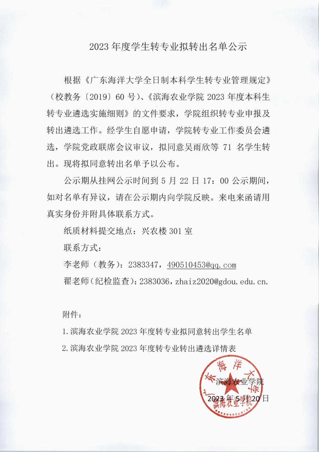 关于公布2023年度哈哈体育报名转专业员工名单的通知