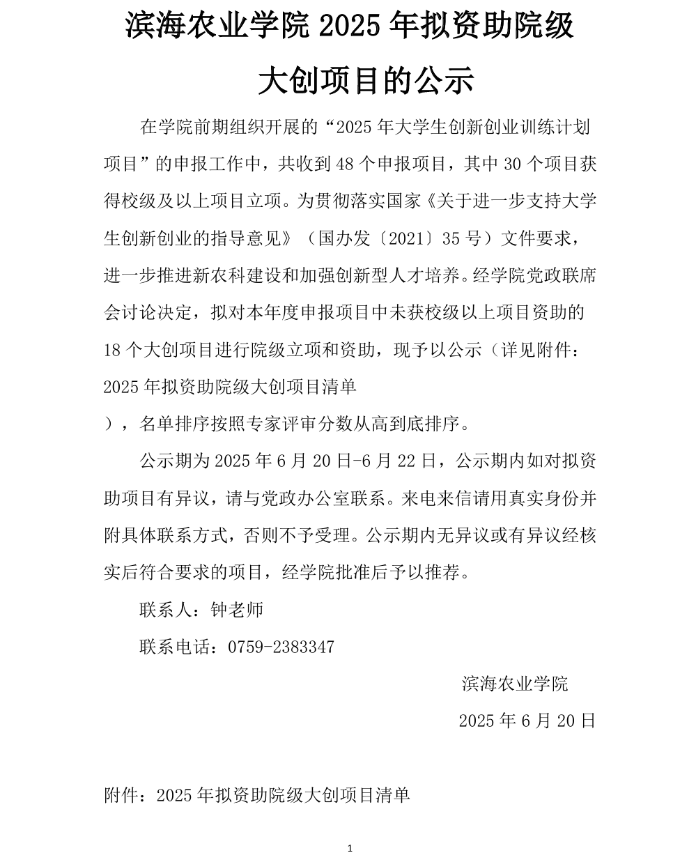 关于哈哈体育2025年拟资助院级大创项目的公示6.20.pdf
