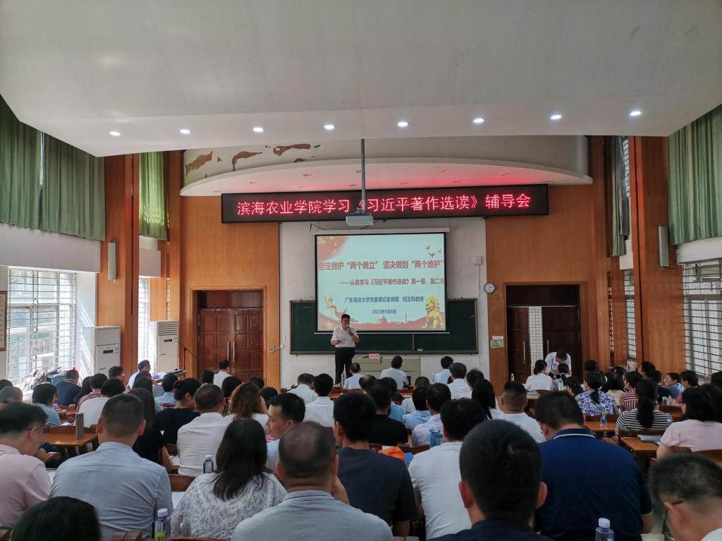 闫玉科教授从《习近平著作选读》第一卷、第二卷出版的背景与意义、主要内容、学习要求与方法进行全方位辅导,并重点解读了习近平总书记在广东考察时的重要讲话精神。